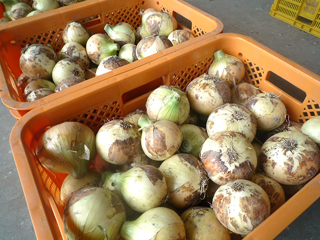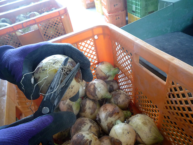 収穫してから玉ねぎ小屋で乾燥させてから冷蔵保存し、年間通して販売しています。