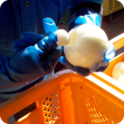 剥き作業、洗浄、検品、1つ1つ全てスタッフの手で丁寧に作業を行っています。