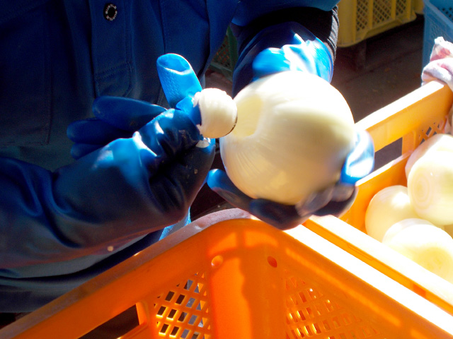 当社で収穫した玉ねぎを、自社工場で加工しています。